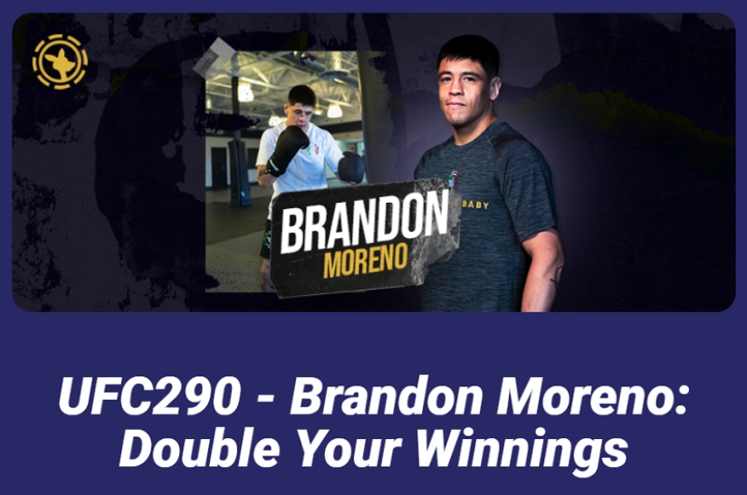 - To participate in the UFC290 - Brandon Moreno: Double Your Winnings promotion, you must bet on Brandon Moreno winning his fight before the fight starts. Only bets with a value of at least 10 (ten) USD are eligible. The Bet must be placed pre-match (before the start of a match) in the Sportsbook section. Bets placed in the in-play section or on other fights within the Sportsbook are not eligible for the promotion. Only single bets are eligible for this promotion; combi bets are not eligible. You're not eligible for this promotion if you choose to cash out your Bet. Only your first Bet on either fight is eligible for the promotion. Further information regarding the Sportsbook is in our Games Policy.
