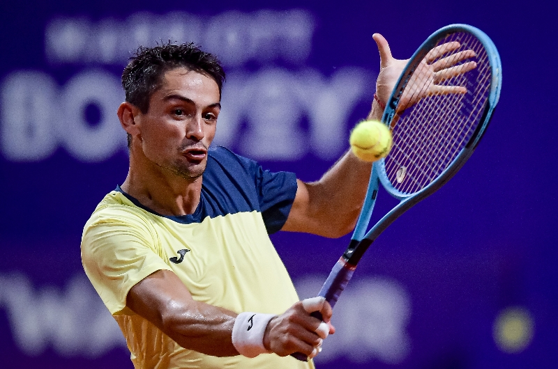 Mariano Navone plays a backhand against Camilo Ugo Carabelli in Buenos Aires