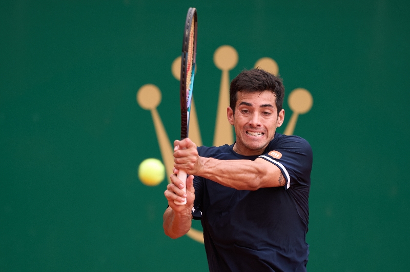 Cristian Garin returns a ball during his Round of 64 match against Matteo Arnaldi in Monte-Carlo