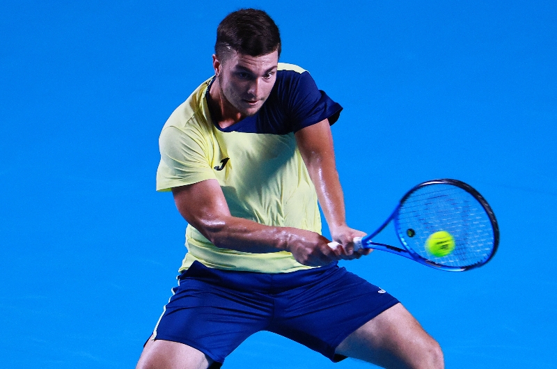 Miomir Kecmanovic plays a backhand against Flavio Cobolli in Acapulco