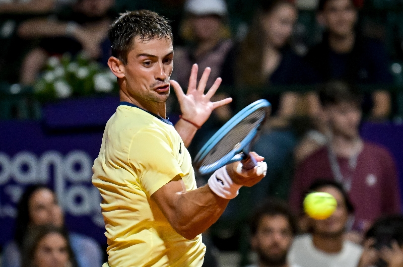 Mariano Navone plays a forehand against Camilo Ugo Carabelli in Buenos Aires