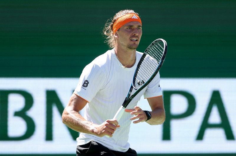 Alexander Zverev returns a shot to Arthur Fils in Indian Wells